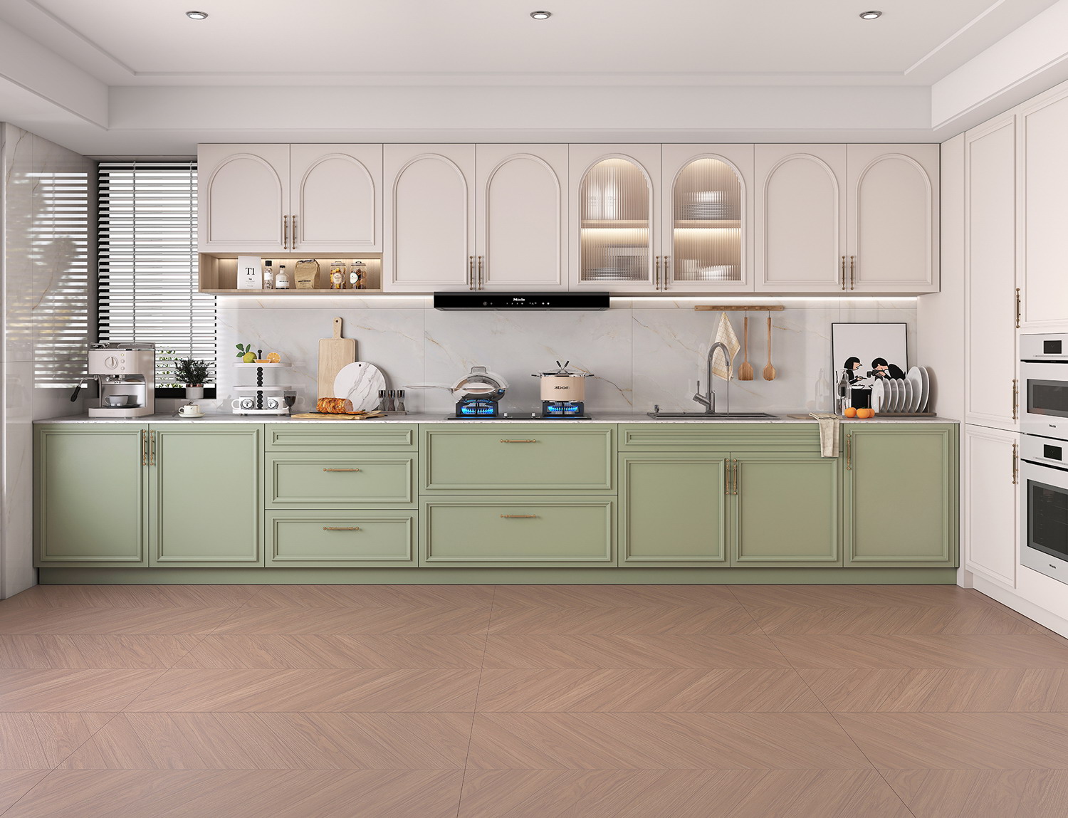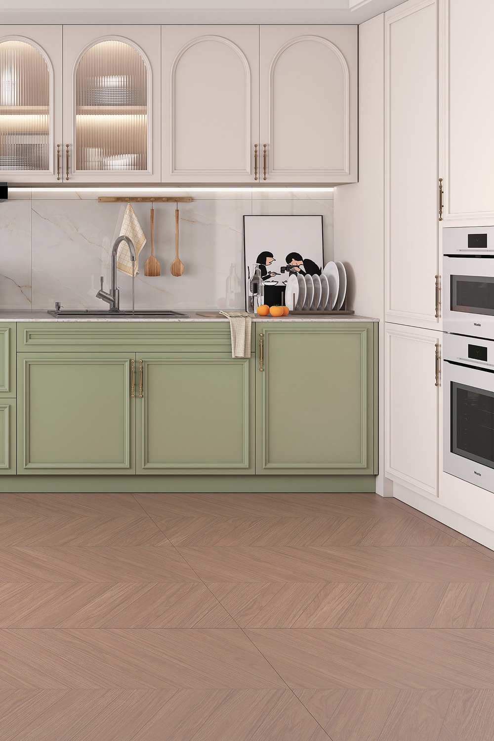 将密致桉木纹理和鱼骨型设计结合